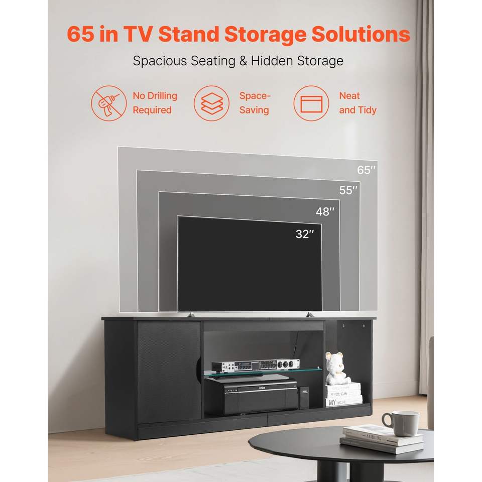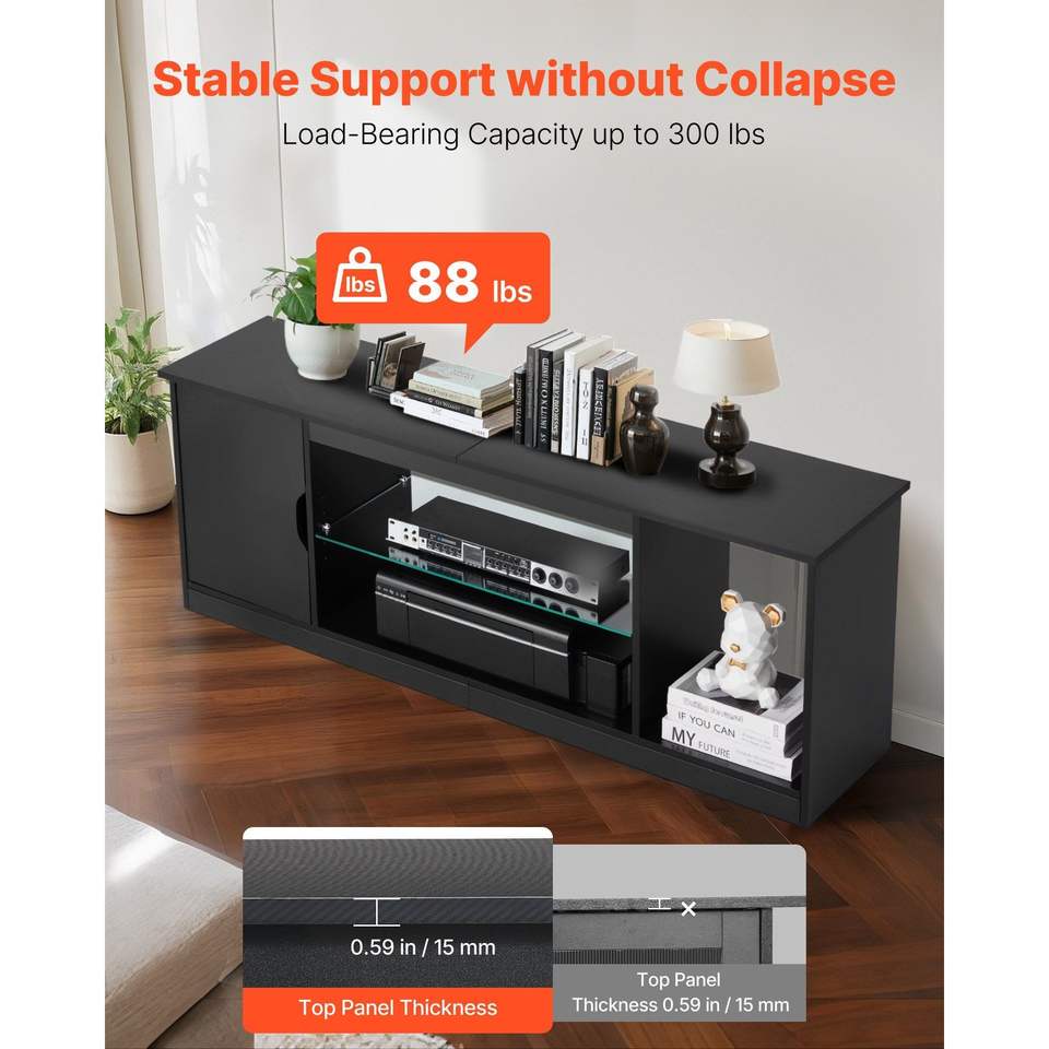 Modern Entertainment Center TV Stand Glass Shelf for TVs up to 65 Inches