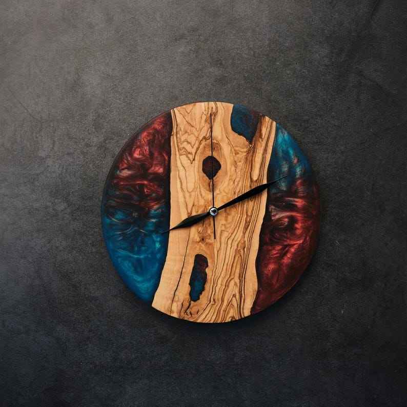 นาฬิกาแขวนผนังงานศิลปะเรซิ่นอีพ็อกซี่สมัยใหม่ ทำด้วยมือ ตกแต่งด้วยเข็มควอตซ์ ลายภาพนิ่ง สำหรับห้องนั่งเล่น