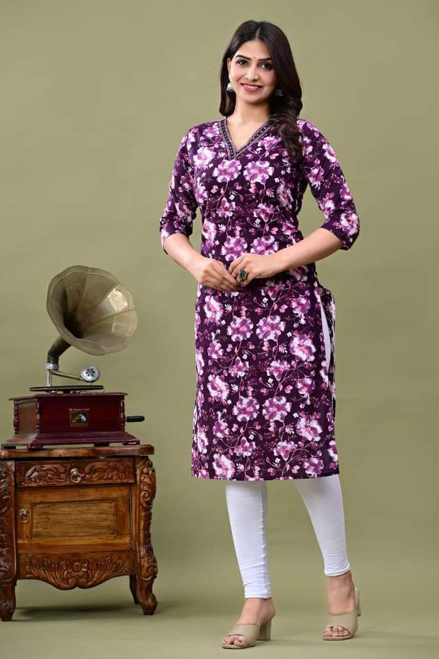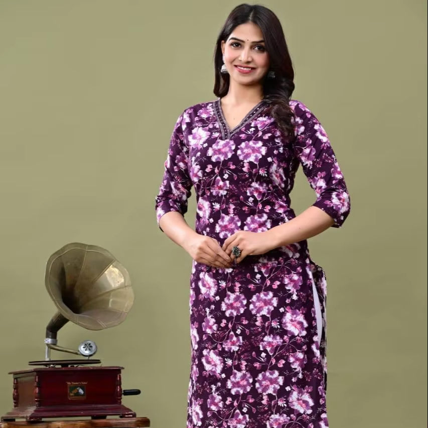 ชุดคุर्ตาพิมพ์ลายดอกไม้สไตล์โมเดิร์นสำหรับผู้หญิง ทรงตรง สวมใส่สบาย ผลิตจากผ้าเรยอนแท้ เสื้อผ้าสไตล์อินเดียและปากีสถานสำหรับผู้หญิง