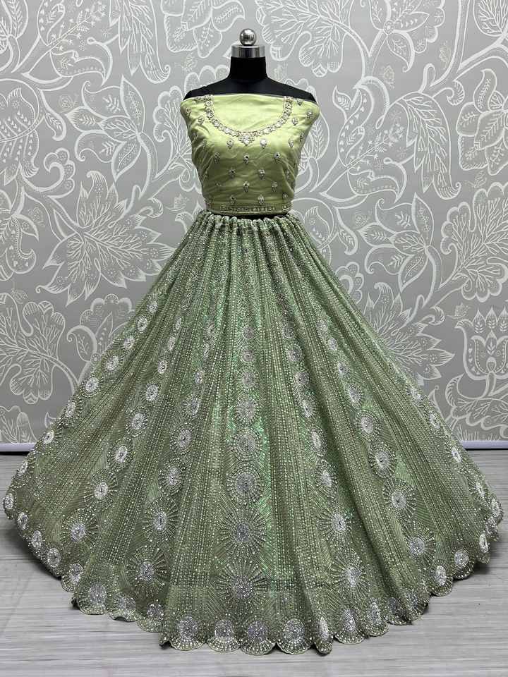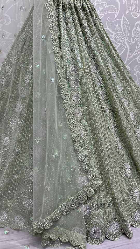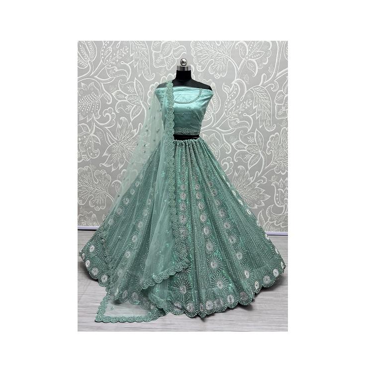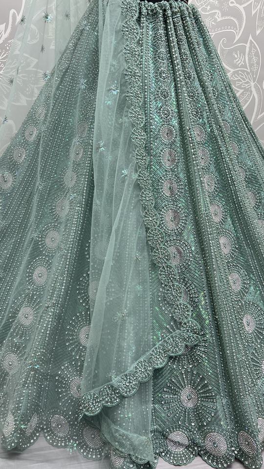 Lehenga choli ปักด้วยเพทายและเลื่อมสำหรับปาร์ตี้ของผู้หญิงที่ทันสมัย