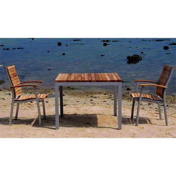โต๊ะรับประทานอาหารในสวนดีไซน์แบบยุโรปทันสมัยเฟอร์นิเจอร์กลางแจ้งทำจากอลูมิเนียมไม้สักสำหรับโรงแรมร้านอาหารคาเฟ่ร้านค้าสวนสาธารณะ