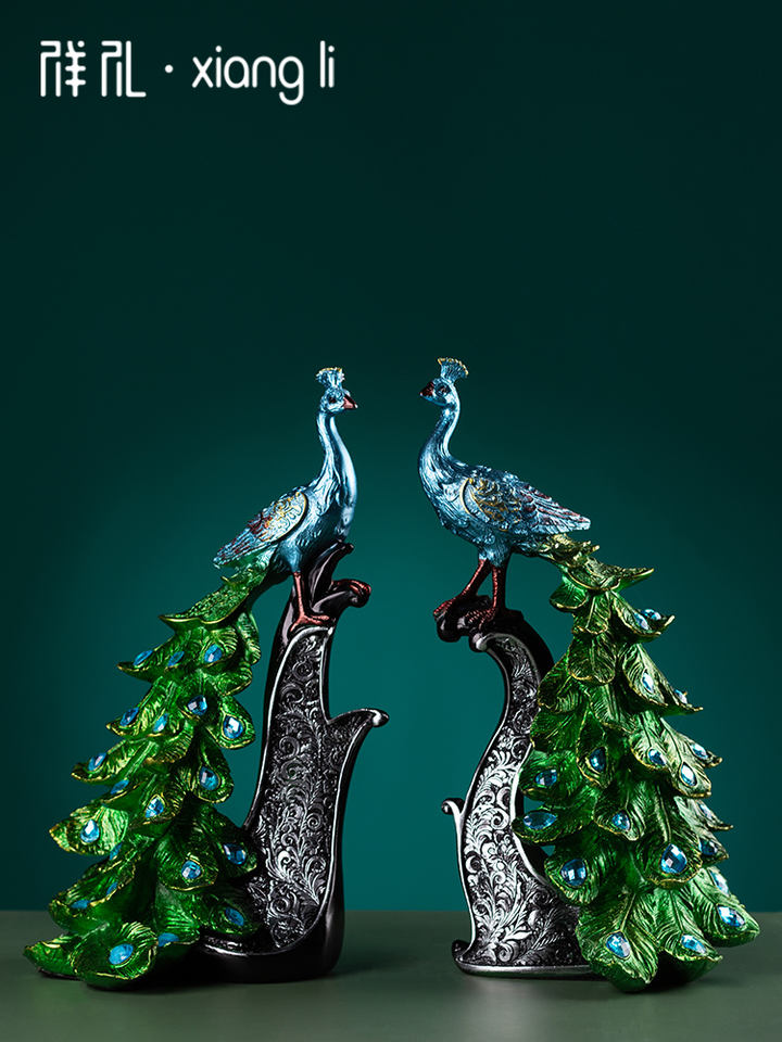 งานประติมากรรมศิลปะพื้นบ้านยุโรปสมัยใหม่ ของตกแต่งเรซิ่นอีพ็อกซี่สร้างสรรค์ สำหรับตกแต่งบ้าน ตู้ไวน์ ตู้วางทีวี รูปนกยูง บ้านใหม่