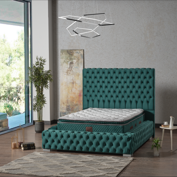 เตียงนอนอัจฉริยะปรับระดับได้สไตล์ยุโรปสมัยใหม่ ขนาดควีนไซส์ พร้อมหัวเตียงแบบออตโตมันหุ้มผ้าบุนวม มีที่เก็บของ โครงเตียงโลหะ