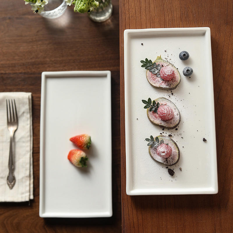 จานเซรามิกทรงสี่เหลี่ยมสไตล์ยุโรปทันสมัยสำหรับชายามบ่ายแบบตะวันตกที่เรียบง่ายสำหรับปาร์ตี้เค้กมูสของหวาน