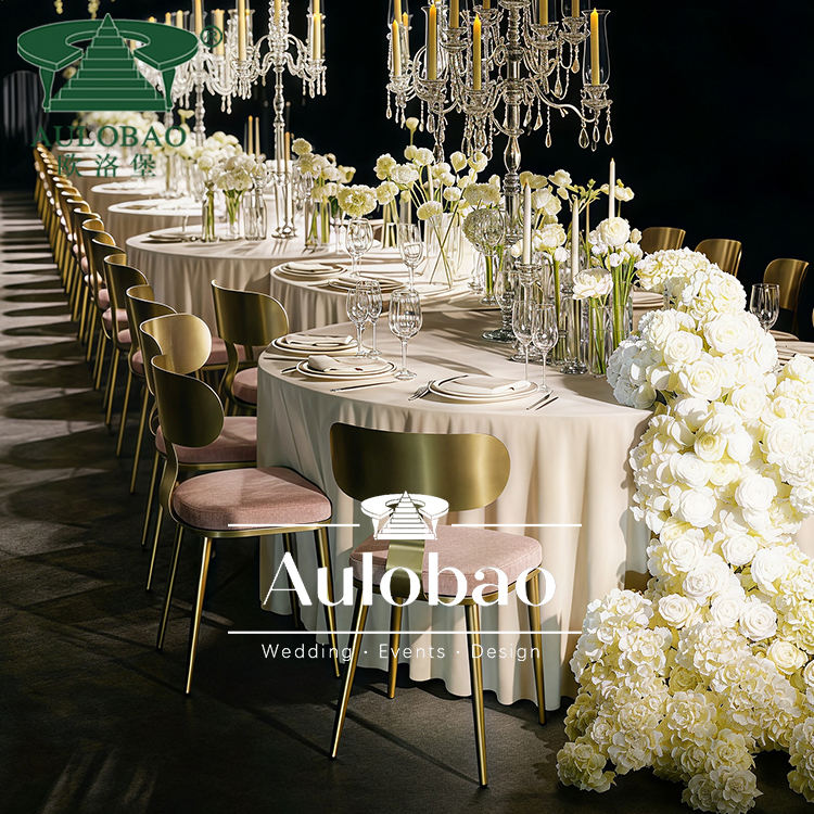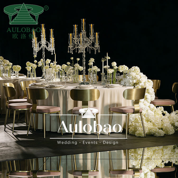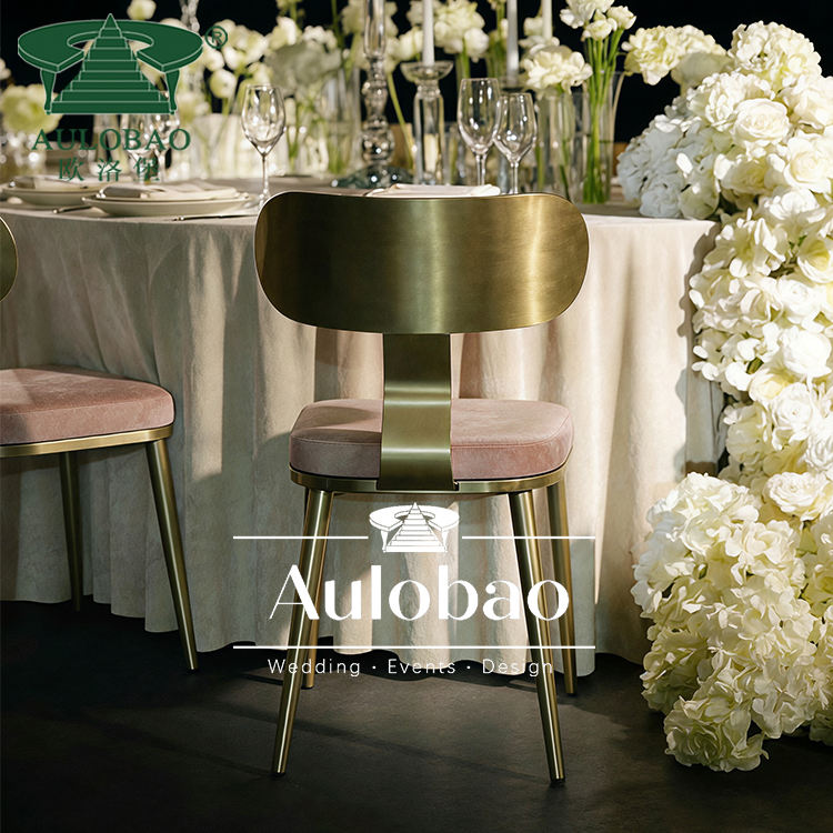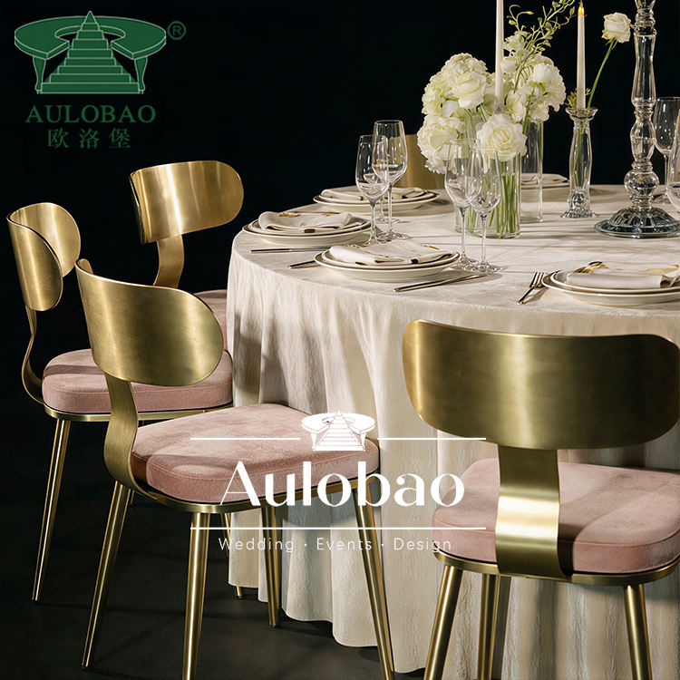 เก้าอี้รับประทานอาหารกรอบสแตนเลสสีทองสลักสำหรับใช้ในงานปาร์ตี้งานปาร์ตี้งานอีเวนต์ทันสมัยสำหรับใช้กลางแจ้งและโรงแรม