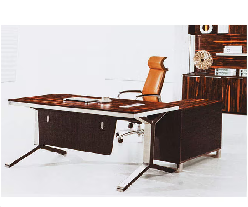 โต๊ะสำนักงานผู้บริหารที่ทันสมัยพร้อมผิวไม้ขาโครงโลหะและเก้าอี้หนังกลับสูงตามหลักสรีรศาสตร์