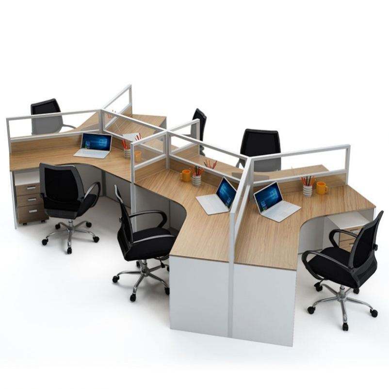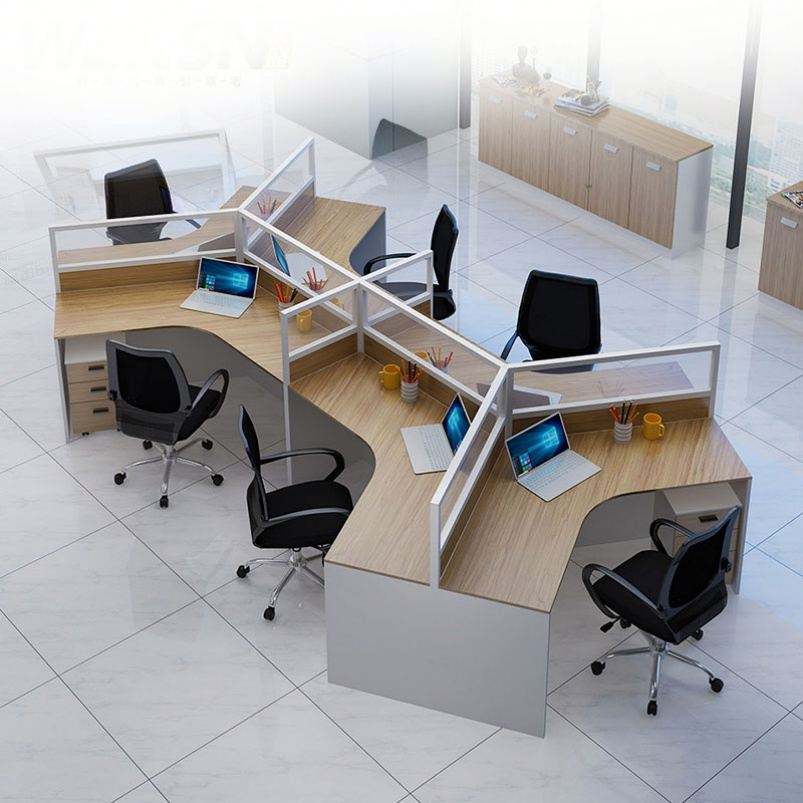 Modern Executive White V-Shaped Workstation Desk Extendable Office Furniture with Wooden Tables and Chairs Set