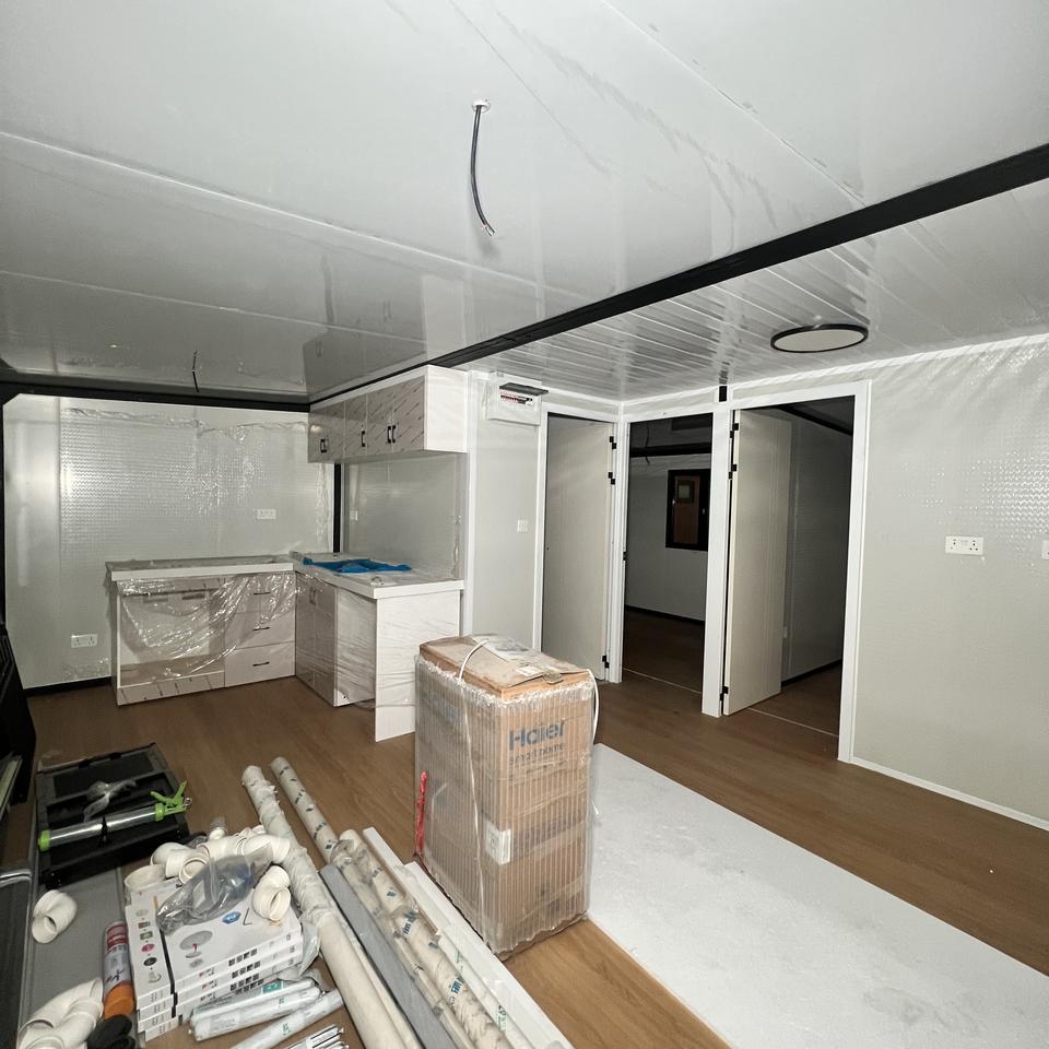 บ้านคอนเทนเนอร์แบบขยายได้ทันสมัย ทำจากเหล็กและแผ่นแซนวิช ขนาด 20 ฟุต บ้านสำเร็จรูปแบบพกพา วิลล่าเคลื่อนที่