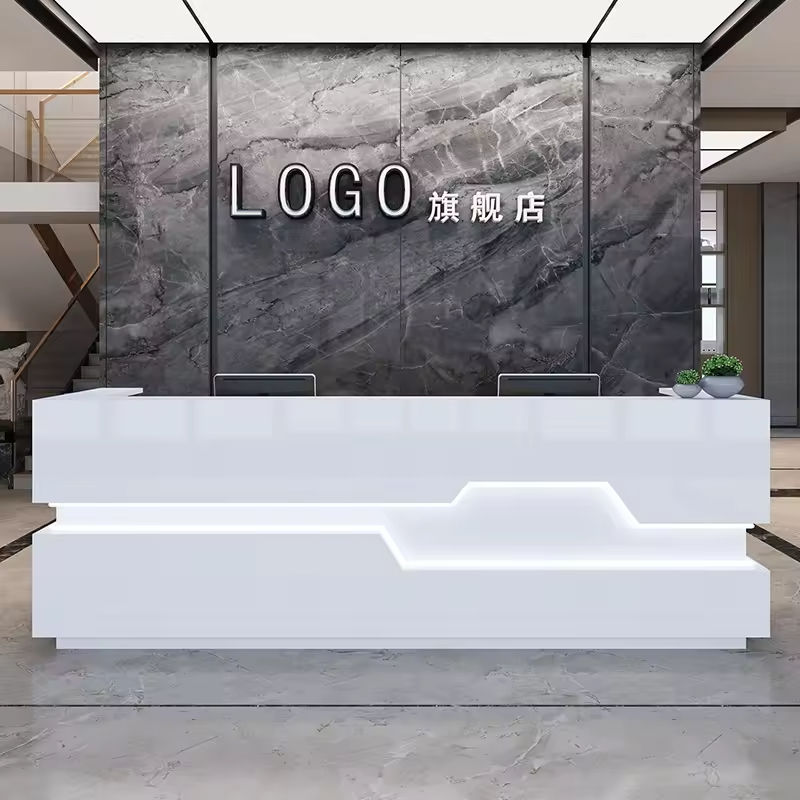 Modern Extendable White Luxury Reception Desk & Front Counter for Hotel & Mall Use Office Furniture for Two Persons