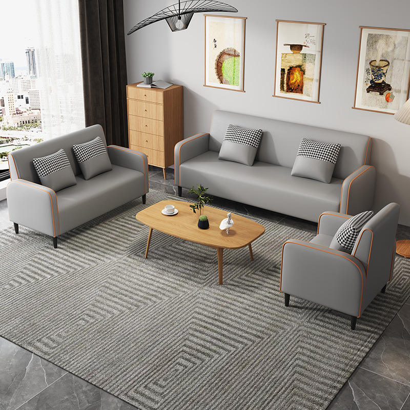 ชุดโซฟาผ้าสไตล์โมเดิร์นสำหรับห้องนั่งเล่น ดีไซน์แบบโมดูลาร์ สีเทาแต่งขอบสีส้ม รองรับได้ทั้งแบบสองที่นั่งหรือสามที่นั่ง โครงสร้างแข็งแรง นั่งสบาย