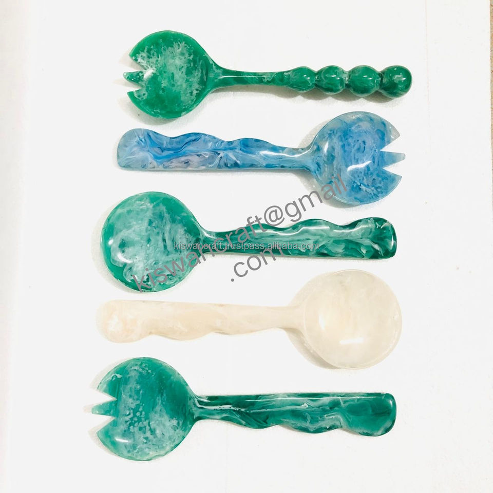 ชุดเสิร์ฟสลัดเรซิ่นสีเขียวและสีน้ำเงินทันสมัย สวยงาม เหมาะสำหรับการรับประทานอาหาร ใช้ในงานขึ้นบ้านใหม่ ใช้ในครัวที่ทันสมัย เป็นอุปกรณ์เสิร์ฟ