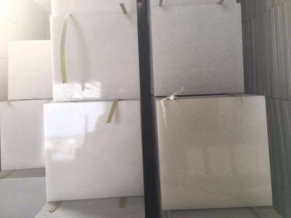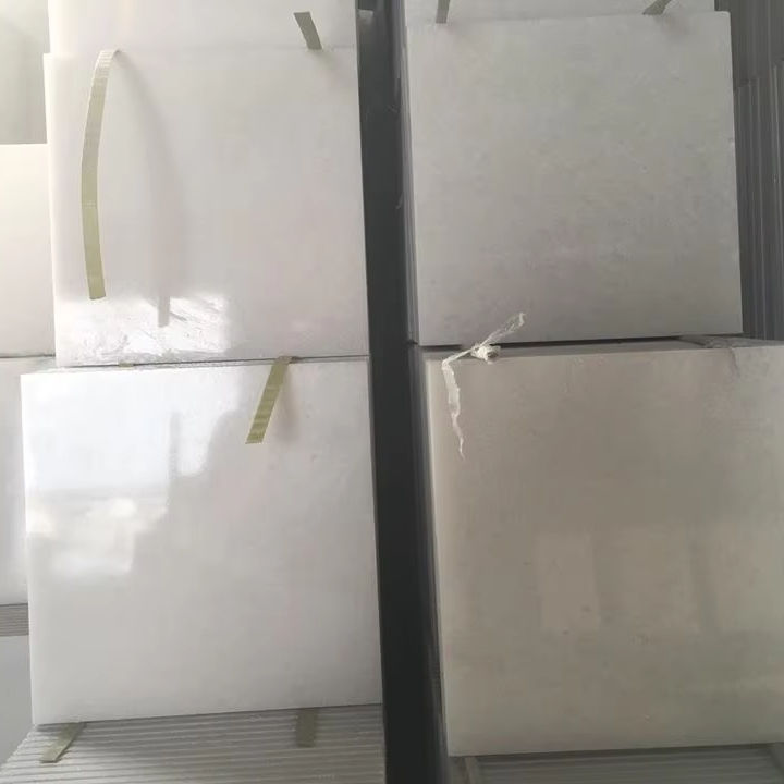 แผ่นหินแคลไซต์สีขาวนมขัดเงาแบบโรงงานสมัยใหม่ กันน้ำ เป็นมิตรกับสิ่งแวดล้อม ทนทาน ใช้งานได้ยาวนาน ขนาด 24x24