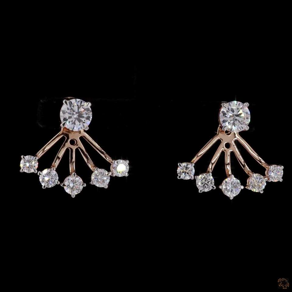 ต่างหูเพชรปลูกในแล็บสไตล์โมเดิร์น | โรสโกลด์14K | ดีไซน์สตั๊ดร่วมสมัย