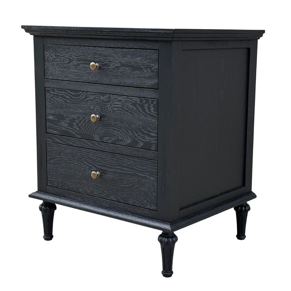 ตู้ข้างเตียงไม้เนื้อแข็งสไตล์โมเดิร์นฟาร์มเฮาส์ 3 ลิ้นชัก ขาแกะสลัก พร้อมการตกแต่งด้วยไม้โอ๊คธรรมชาติ สำหรับเก็บของ