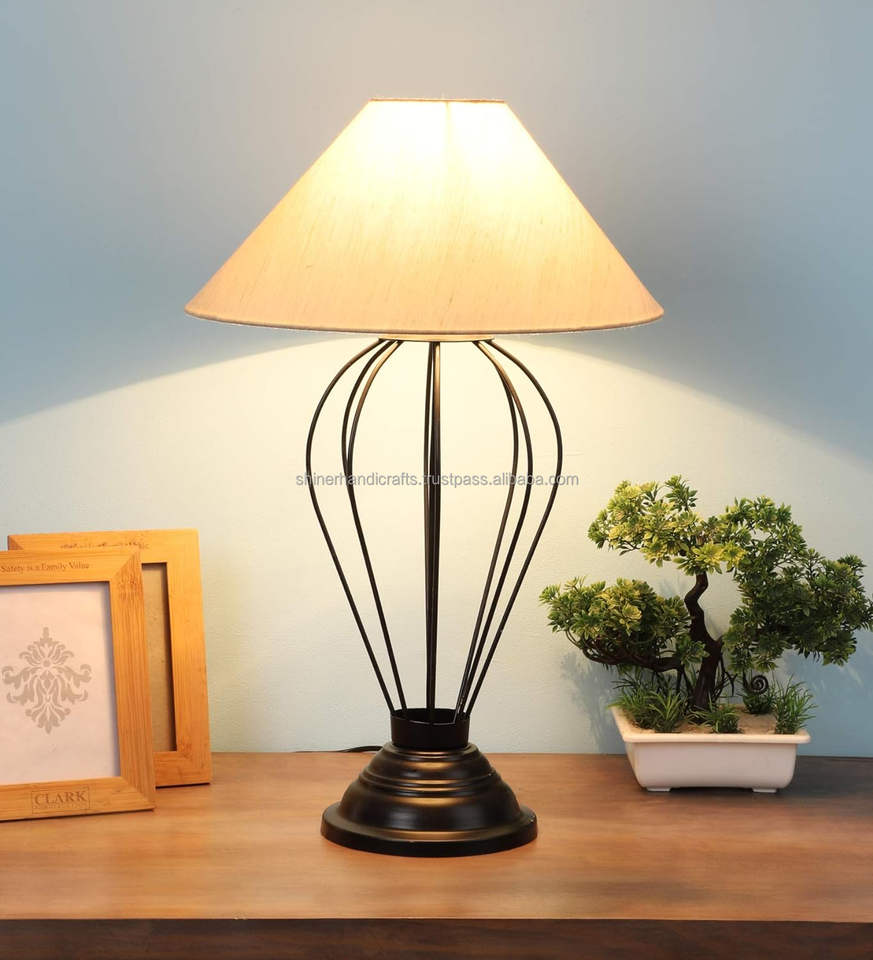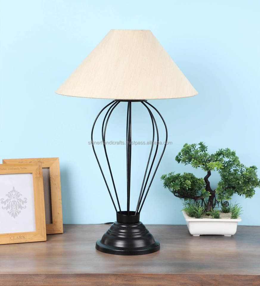 โคมไฟโต๊ะโลหะสไตล์โมเดิร์นสำหรับบ้านไร่พร้อมโป๊ะพิมพ์โต๊ะข้างเตียงไฟสีดำด้านข้างของตกแต่งบ้าน