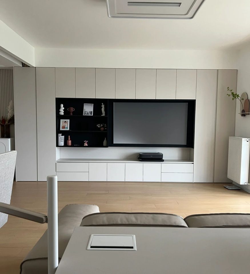 ชั้นวางทีวีไม้ไฮเอนด์สำหรับห้องนั่งเล่นเฟอร์นิเจอร์บ้านสไตล์บ้านไร่สีขาว/น้ำตาล/ดำ