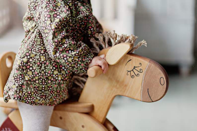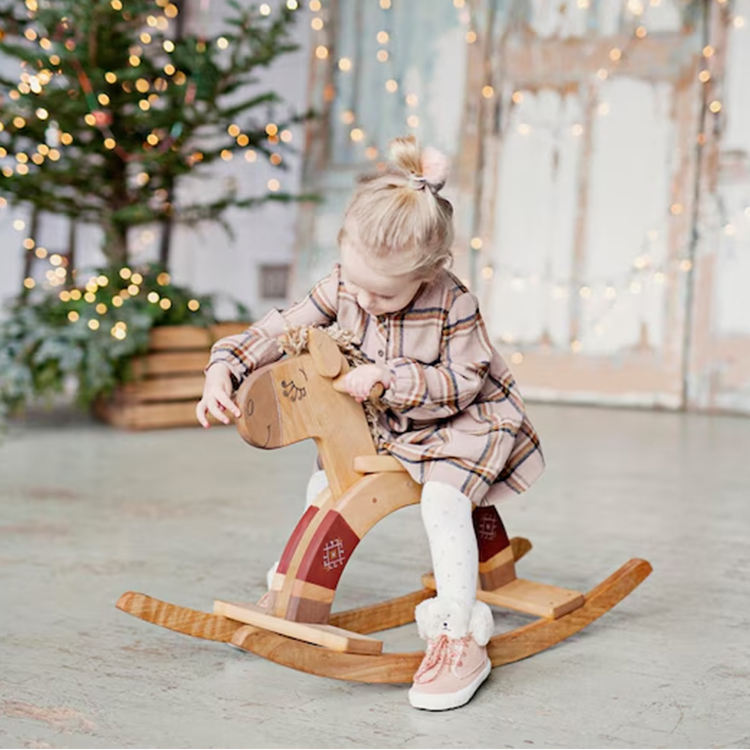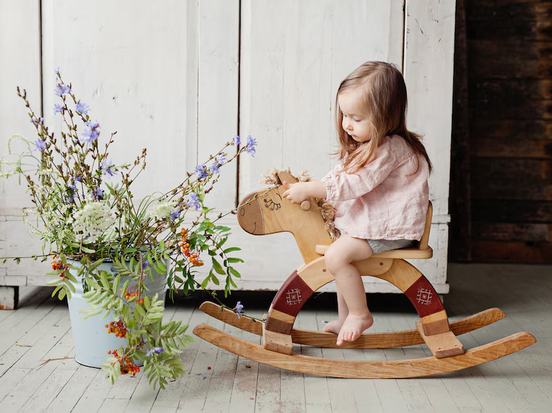 ของเล่นเตียงโยกไม้สำหรับเด็กทารกและเด็กวัยหัดเดินที่มีด้ามจับเฟอร์นิเจอร์สำหรับเด็กในฟาร์มที่ทันสมัย