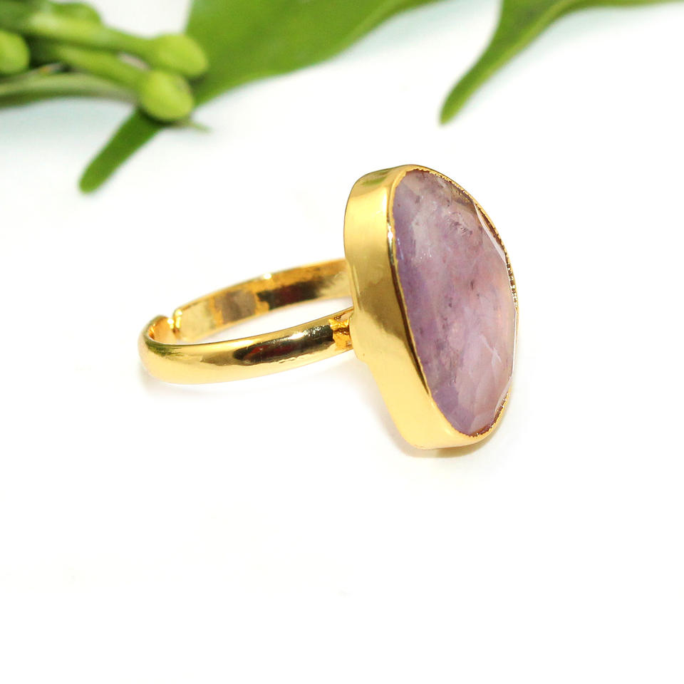 แหวนทองเหลืองชุบทอง24K สำหรับผู้หญิงแหวนอเมทิสต์หินเดี่ยวแบบคลาสสิก