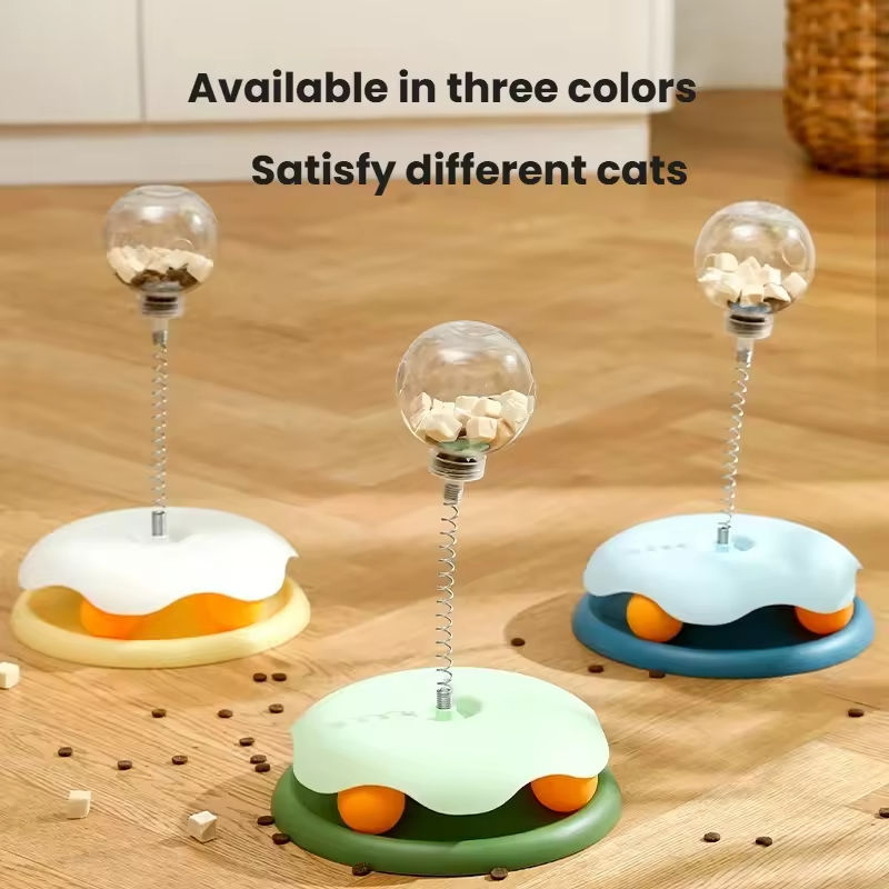 แท่นหมุนสำหรับแมวเพื่อความบันเทิงในตัวเองแฟชั่นทันสมัยเครื่องจ่ายอาหารรั่วลูกบอลทีเซอร์สำหรับสัตว์เลี้ยงเคี้ยวของเล่นสัตว์เลี้ยงไฮโซ