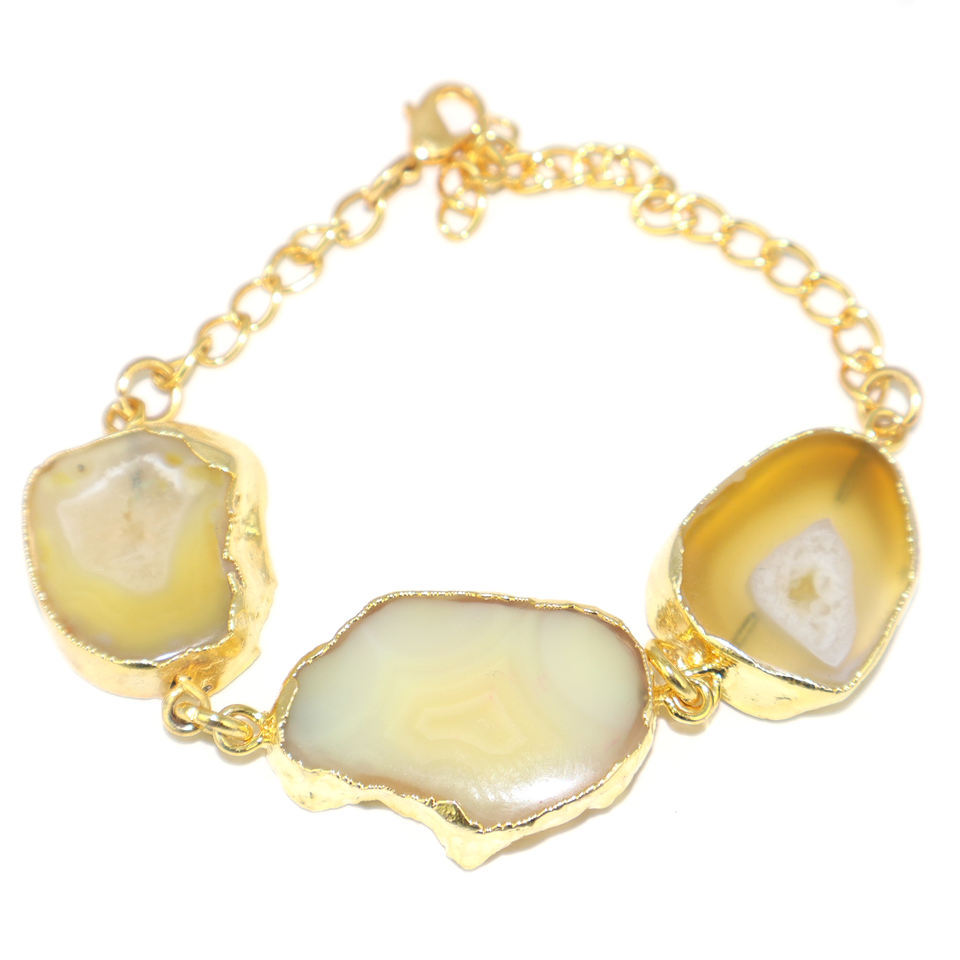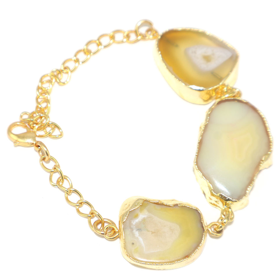 กำไลข้อมือหินอาเกตธรรมชาติทรงแผ่นบาง ดีไซน์ทันสมัย ชุบทอง 24K สายปรับได้ คริสตัลบำบัดรักษา สำหรับผู้หญิงและเด็กผู้หญิง