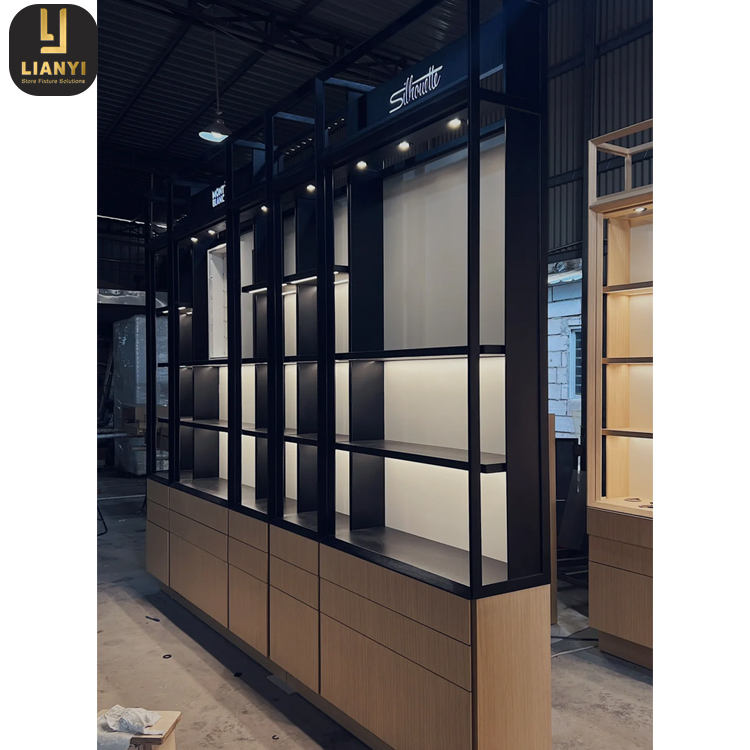 ชั้นวางแว่นกันแดดไม้สไตล์แฟชั่นโมเดิร์นชั้นวางของสำหรับร้านค้าออปติคอลเฟอร์นิเจอร์
