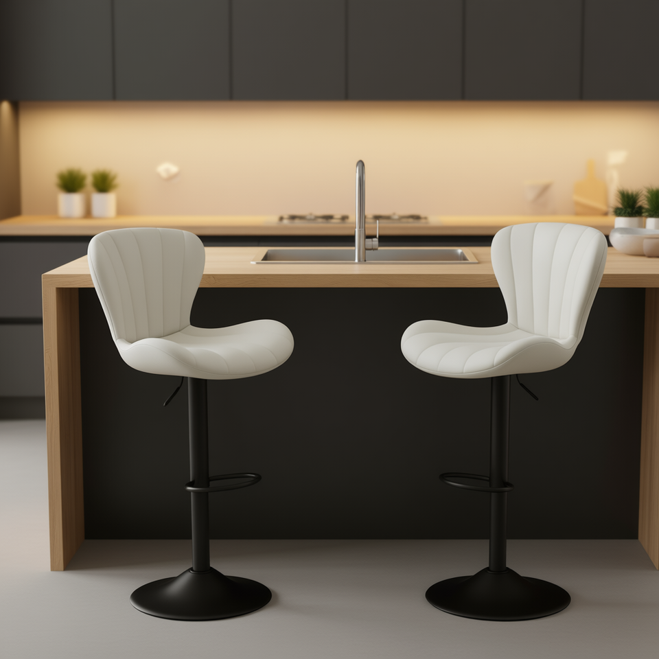 ชุดเก้าอี้บาร์หมุนได้หุ้มหนังเทียมทันสมัย ฐานโลหะสีขาว สำหรับเคาน์เตอร์ครัวหรือบาร์