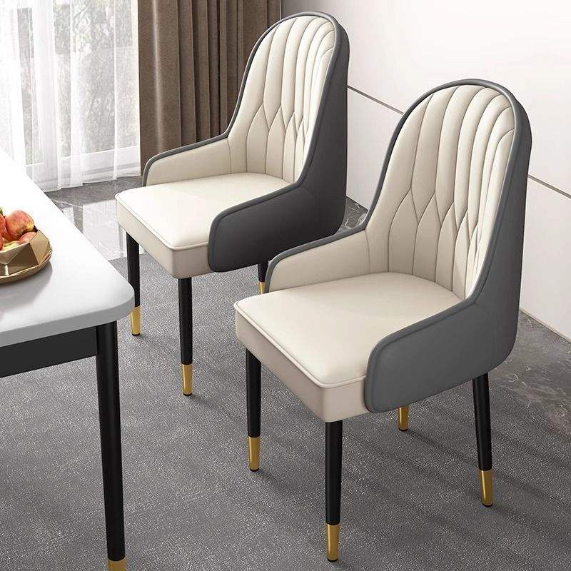 เก้าอี้รับประทานอาหารหุ้มด้วยหนังเทียมที่ทันสมัยพร้อมด้วยขาโลหะเคลือบทองสำหรับห้องอาหารคาเฟ่หรือร้านอาหาร