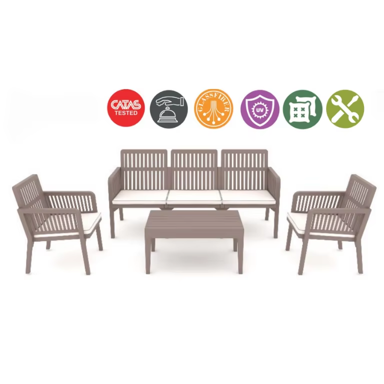 Modern Fiberglass Reinforced Triple Outdoor Dining Sofa Set with 2 Armchairs 1 Three-Seater Sofa Coffee Table-Easy Assembly