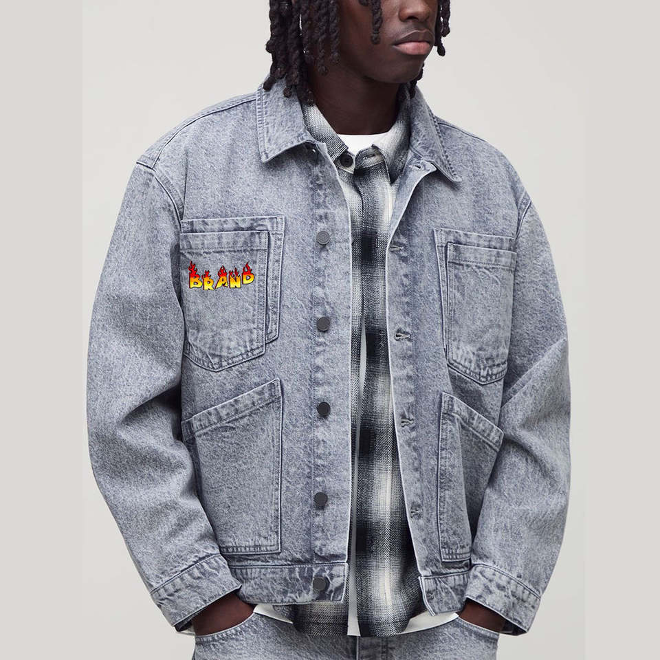 แจ็คเก็ตยีนส์ทรงโมเดิร์น แห้งเร็ว สำหรับผู้ชาย ขายดี พร้อมปักโลโก้ตามสั่ง ระบายอากาศได้ดี ผลิตจากผ้าฝ้าย 100%