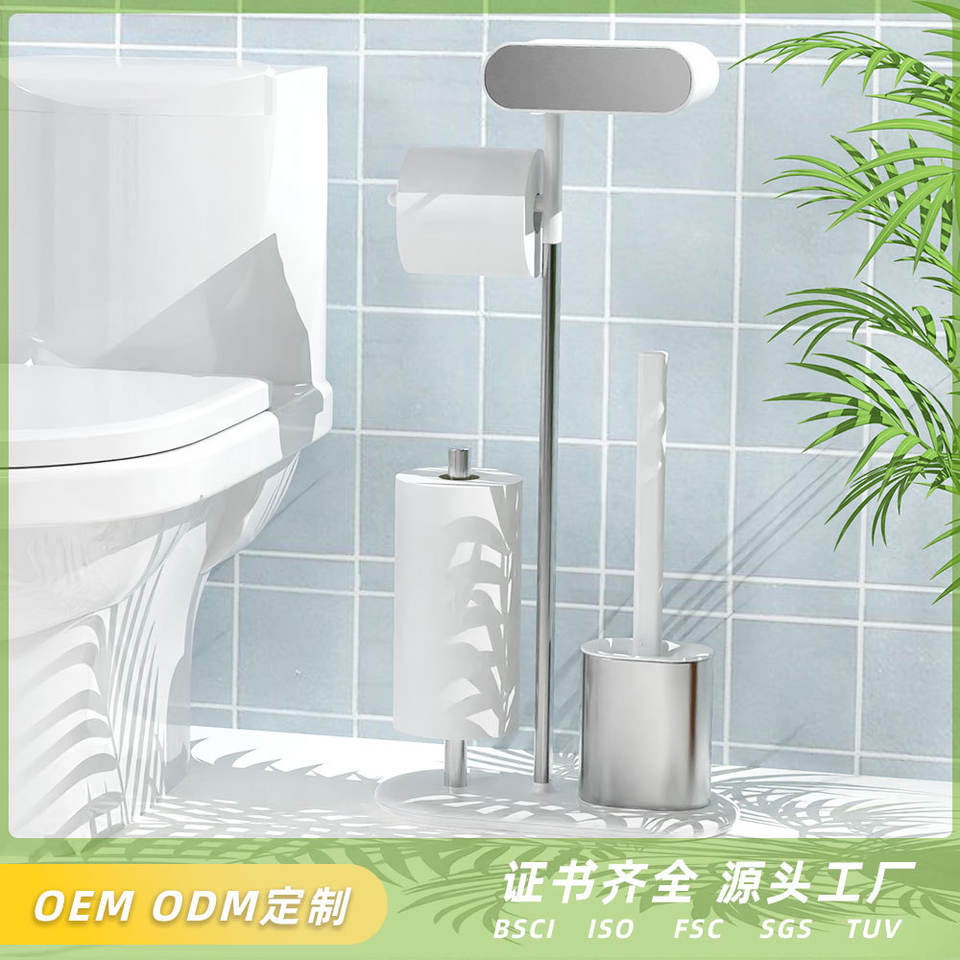 ที่ใส่กระดาษชำระแบบตั้งพื้นทันสมัยพร้อมที่เก็บแปรง อุปกรณ์จัดระเบียบห้องน้ำ ดีไซน์กันความชื้น รูปทรงสี่เหลี่ยม
