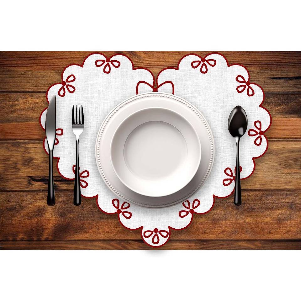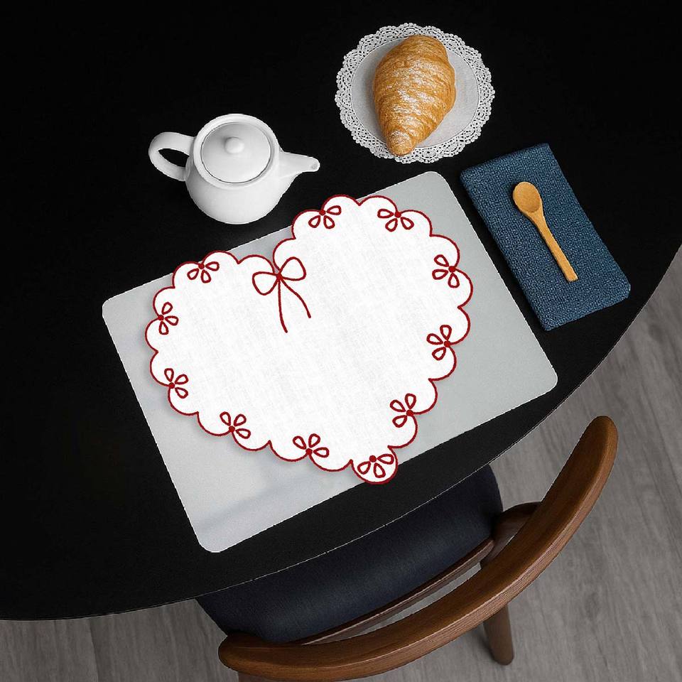 แผ่นรองจานรูปหัวใจปักลายดอกไม้ทันสมัย ผ้าฝ้าย 100% สำหรับวันวาเลนไทน์ บ้าน งานแต่งงาน