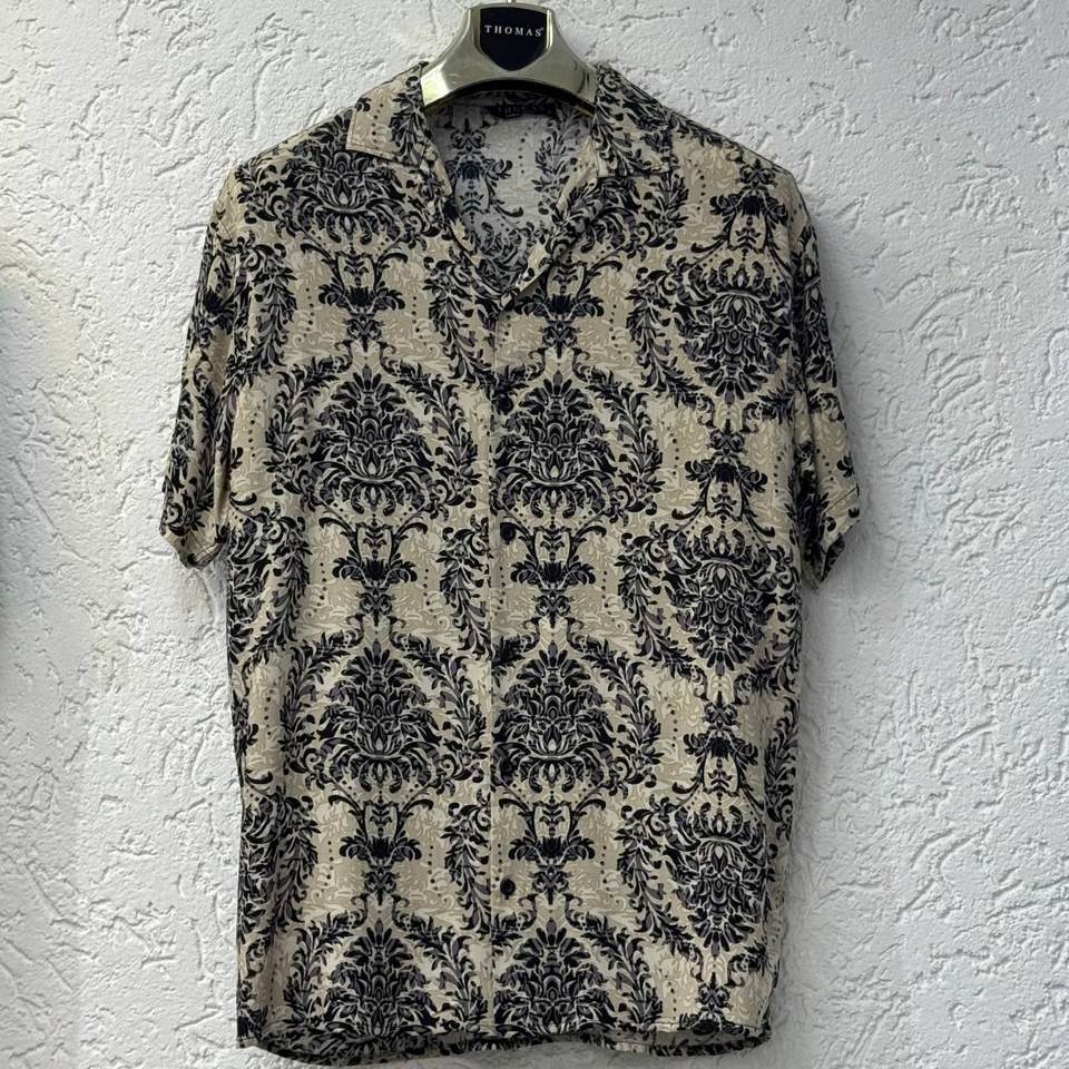 เสื้อเชิ้ตแขนสั้นลายดอกไม้ทันสมัยสำหรับผู้ชาย ทรงหลวม ผ้าเนื้อบางเบา ดีไซน์เก๋สำหรับฤดูร้อน ชุดลำลองสำหรับวันหยุด