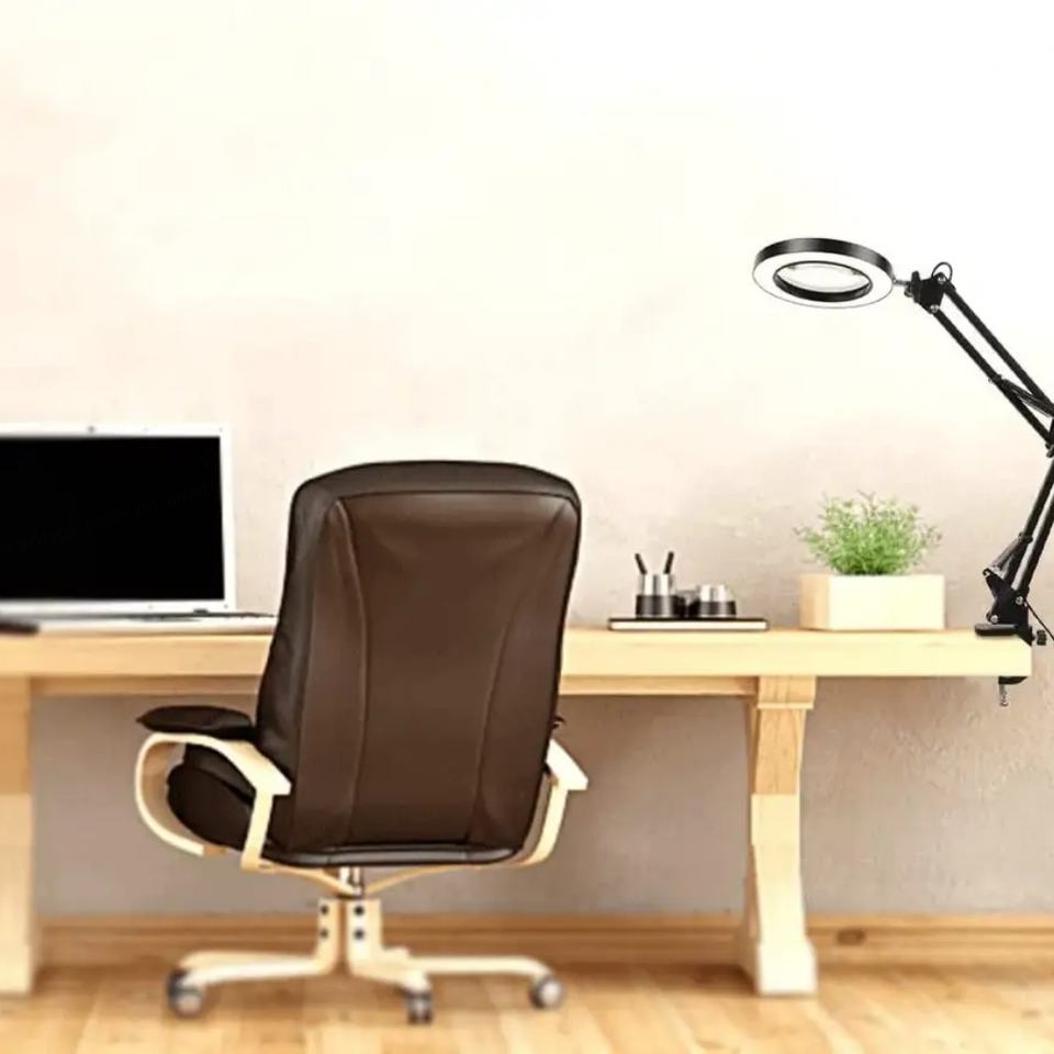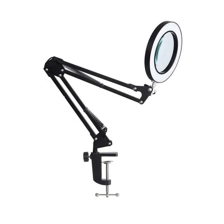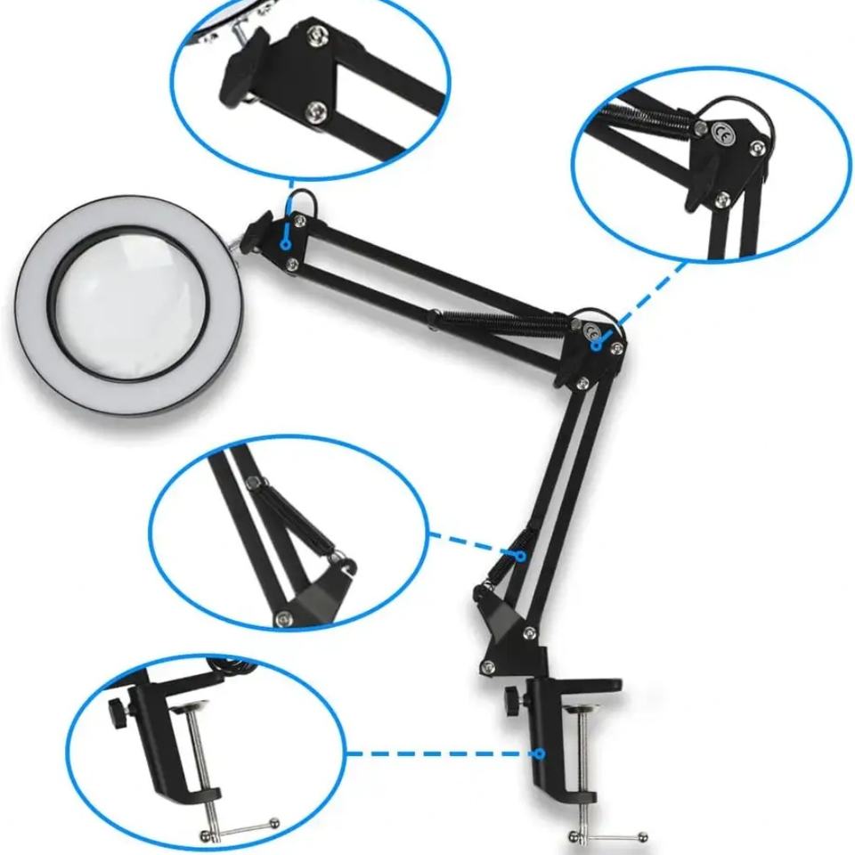 โคมไฟตั้งโต๊ะ LED แบบพับได้ แขนยาว ปรับได้ 12W ป้องกันสายตาพร่า พร้อมแว่นขยาย 5 เท่า