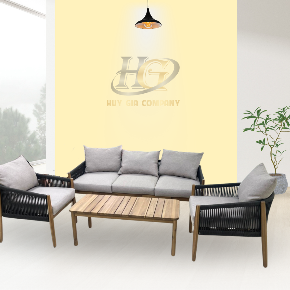 ชุดโซฟาไม้แข็งเปิดประทุนแบบเรียบง่ายทันสมัยพร้อมหมอนอิงนุ่มสำหรับห้องนั่งเล่นกลางแจ้งดีไซน์ตรงมุม
