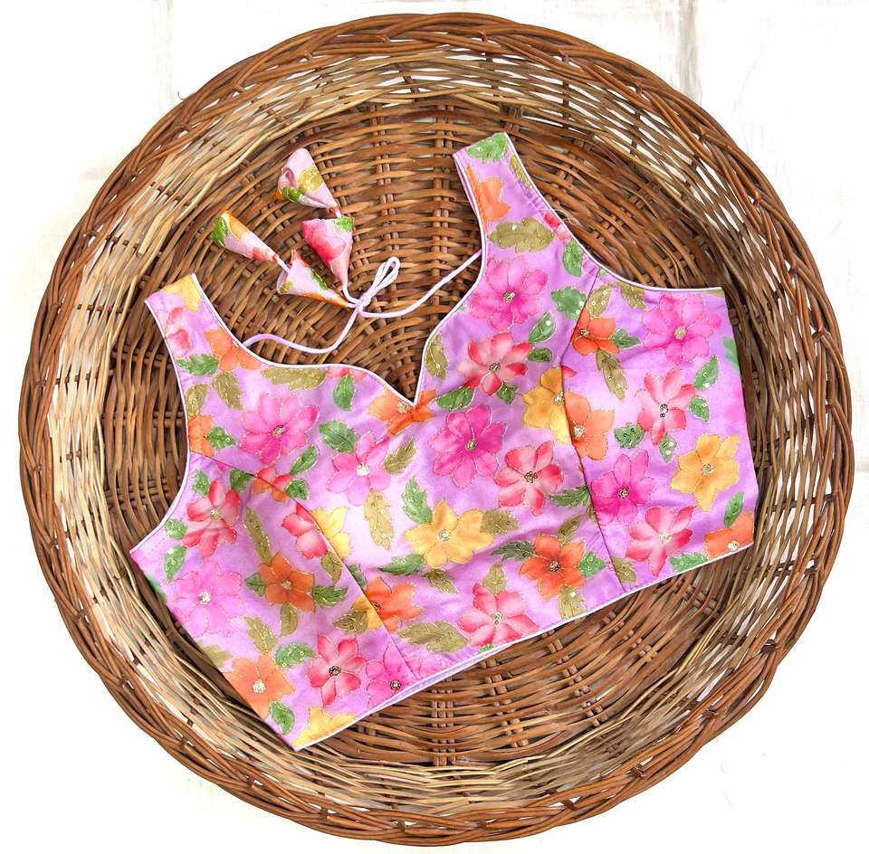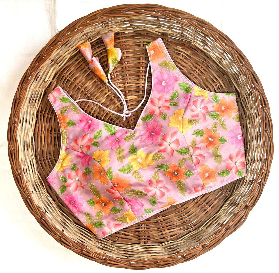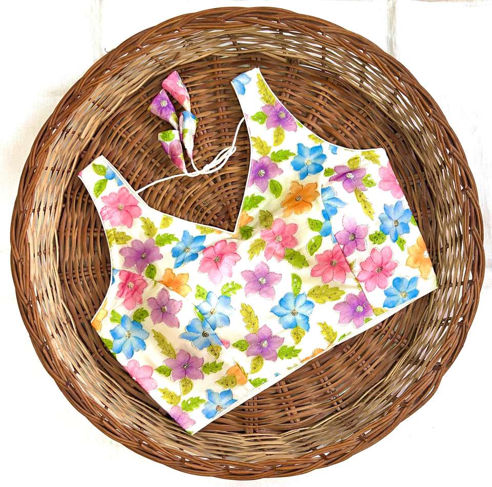 เสื้อเบลาส์ฤดูร้อนสไตล์โมเดิร์นแบบเป็นทางการ พร้อมลายปักดอกไม้พิมพ์ 3 มิติ ดีไซน์เปิดด้านหน้า แต่งโบว์สวยงาม ผ้าไหมแท้ 100% คอวี แขนกุด