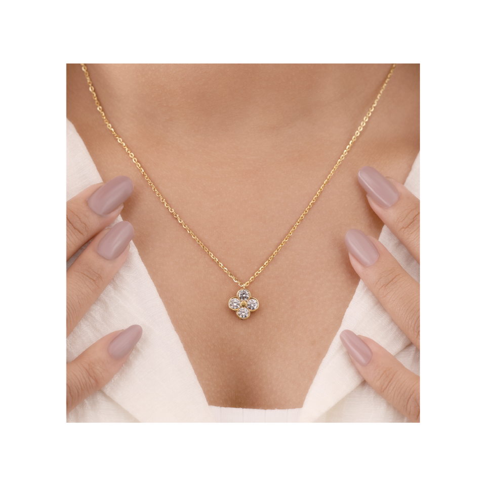 สร้อยคอจี้เพชรทรงสี่กลีบทันสมัย ขัดเงาเรียบเนียน สำหรับสวมใส่ในชีวิตประจำวันและในโอกาสพิเศษ
