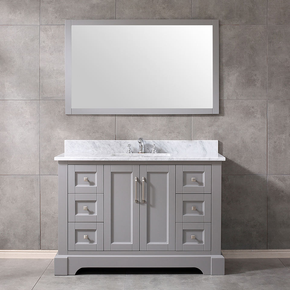 ตู้ห้องน้ำไม้เนื้อแข็งแบบตั้งพื้นสไตล์โมเดิร์นฟาร์มเฮาส์ เป็นมิตรกับสิ่งแวดล้อม พร้อมท็อปหินอ่อนคาร์ราร่าสีขาวจากอิตาลี และบานประตูปิดแบบนุ่มนวล