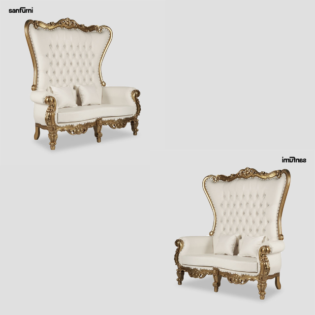 เก้าอี้บัลลังก์โบราณมีสองที่นั่งเก้าอี้บัลลังก์คู่แบบรอยัลพรีเมี่ยมด้านหลังสูงไม้สักมะฮอกกานีเฟอร์นิเจอร์ห้องนั่งเล่น