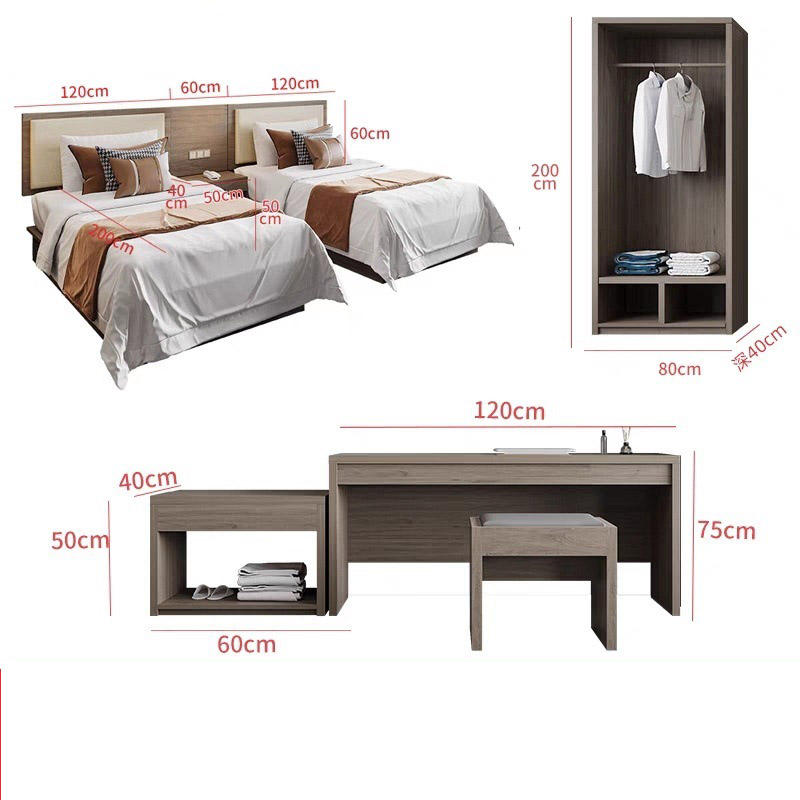 ชุดห้องนอนโรงแรมแบบเต็มรูปแบบที่ทันสมัยสำหรับวิลล่าขนาดเตียงเดี่ยว-คิงไซส์โครงเตียงไม้เนื้อแข็งพร้อมตู้เสื้อผ้าและโต๊ะข้างเตียง