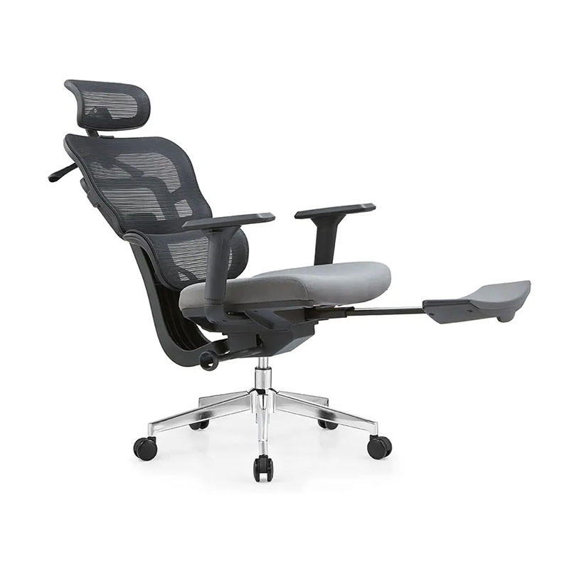 เก้าอี้ทำงานแบบมืออาชีพพร้อมผ้าขยายขาสีเทา