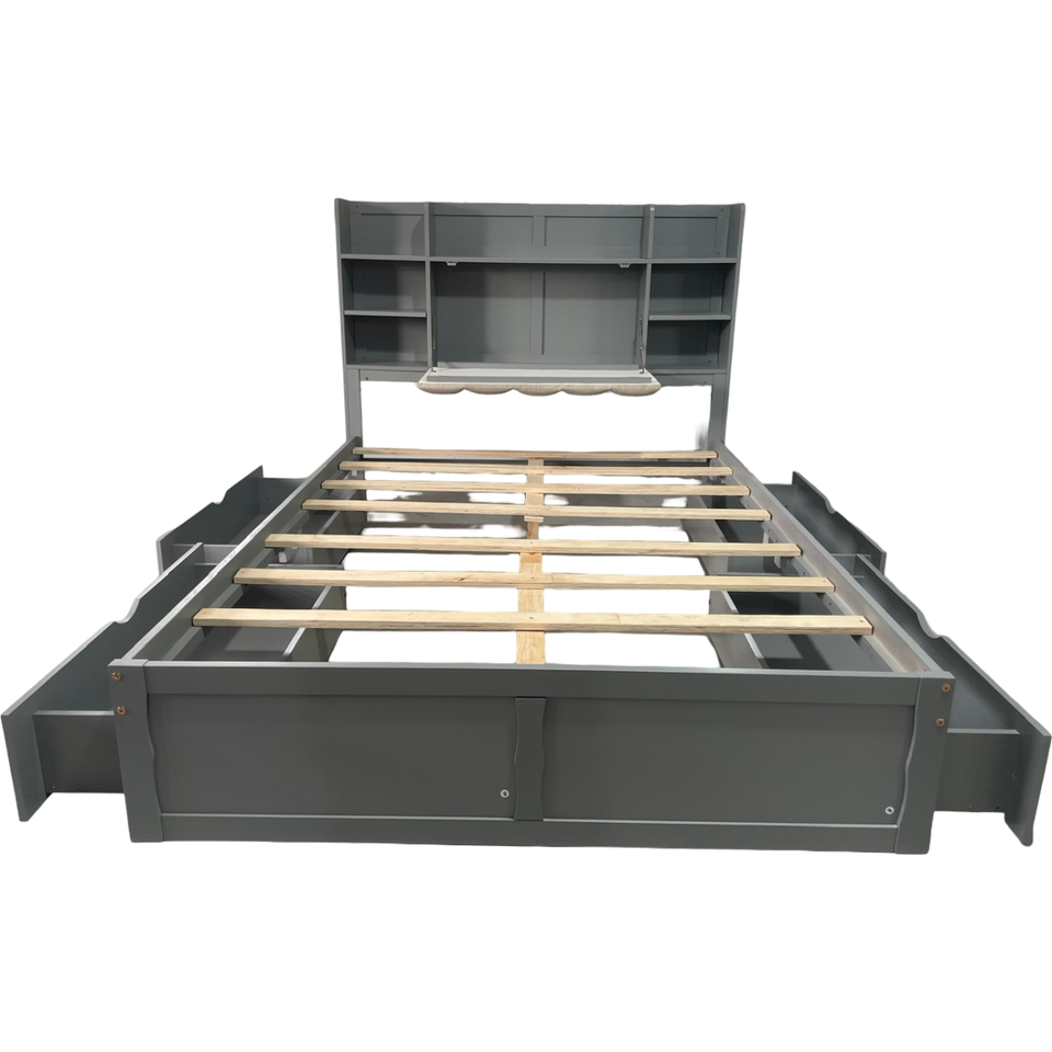 โครงเตียงไม้ขนาดใหญ่ที่ทันสมัยเตียงแพลตฟอร์มทนทานสำหรับผู้ใหญ่หรือวัยรุ่นพร้อมหัวเตียงเสริม