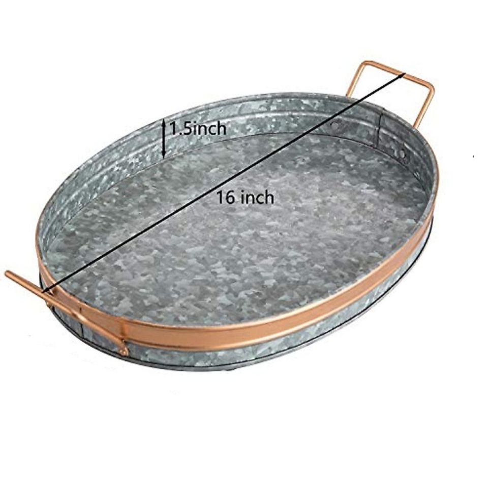 Modern Galvanized Metal Oval Serving Tray With Copper Tone Rim And Handles Farmhouse Decorative Kitchenware For Home And Events