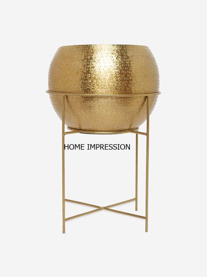 กระถางทรงกลมตั้งได้หรูหราสำหรับปลูกต้นไม้สไตล์อินเดียโลหะอุปกรณ์ตกแต่งสวนแบบโมเดิร์นสำหรับกลางแจ้ง