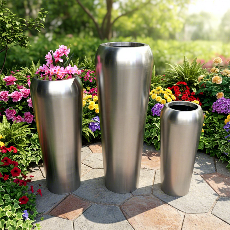 แจกันตั้งพื้นขนาดใหญ่สำหรับตกแต่งบ้าน แจกันดอกไม้ทรงสูงสำหรับตกแต่งภายนอก แจกันดอกไม้สีเงินสำหรับปลูกต้นไม้ในร่ม