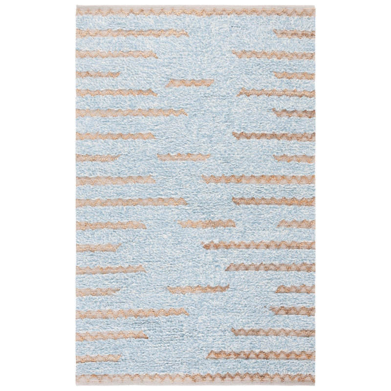 พรมทอมือเรขาคณิตสมัยใหม่ผ้าขนสัตว์/ปอกระเจา/ผ้าฝ้ายสีฟ้า/สีธรรมชาติ