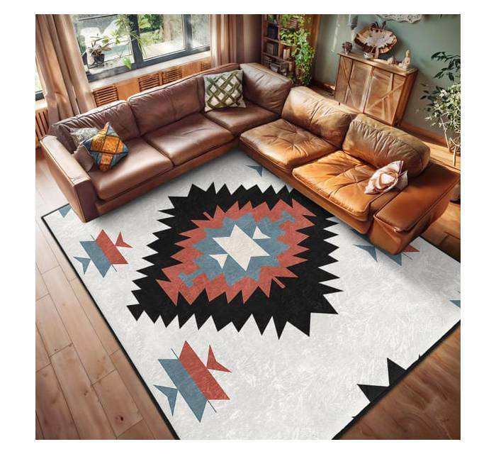 พรมปูพื้นลายเรขาคณิตทันสมัย สไตล์โบฮีเมียนตะวันตกเฉียงใต้ สำหรับห้องนั่งเล่น นุ่ม ทนทาน เหมาะสำหรับตกแต่งบ้าน