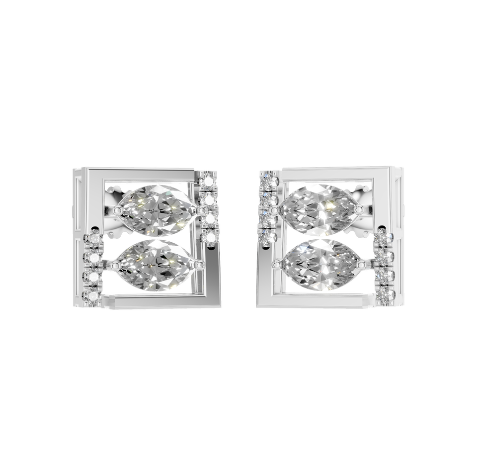 สไตล์:ต่างหูเพชรธรรมชาติทรงมาร์คีส์และทรงกลมแบบกรอบ