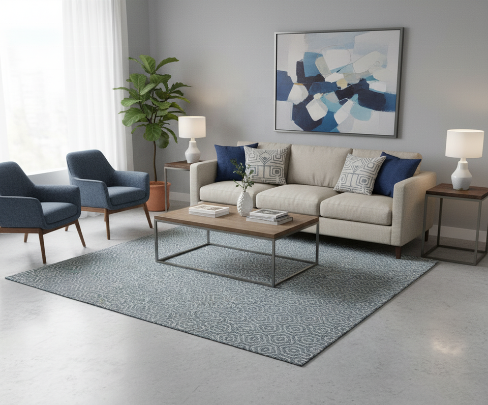 พรมปูพื้นเพชรแบบเรียบผ้าแจ็คการ์ดกันลื่นทำจากโพลีเอสเตอร์รูปทรงเรขาคณิตที่ทันสมัย