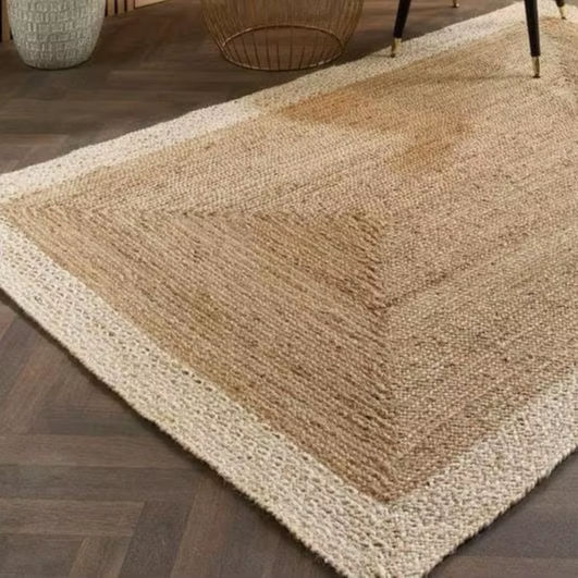 พรมปอกระเจาทรงเรขาคณิตทันสมัยขอบสีขาวถักกันลื่นเป็นมิตรกับสิ่งแวดล้อมบ้านสวดมนต์สี่เหลี่ยมผืนผ้า