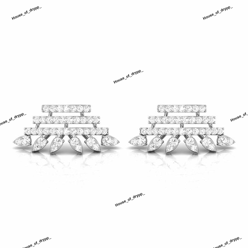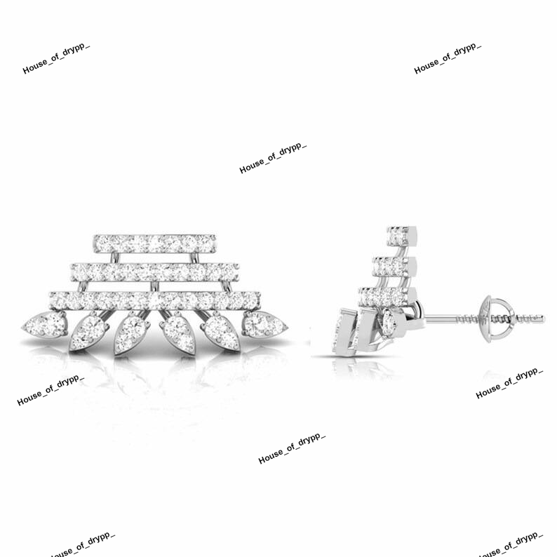 ต่างหูเม็ดเดี่ยวทรงเรขาคณิตแบบโมเดิร์นพร้อมจี้เพชรโมอิสสีเงินประกายสำหรับผู้หญิง